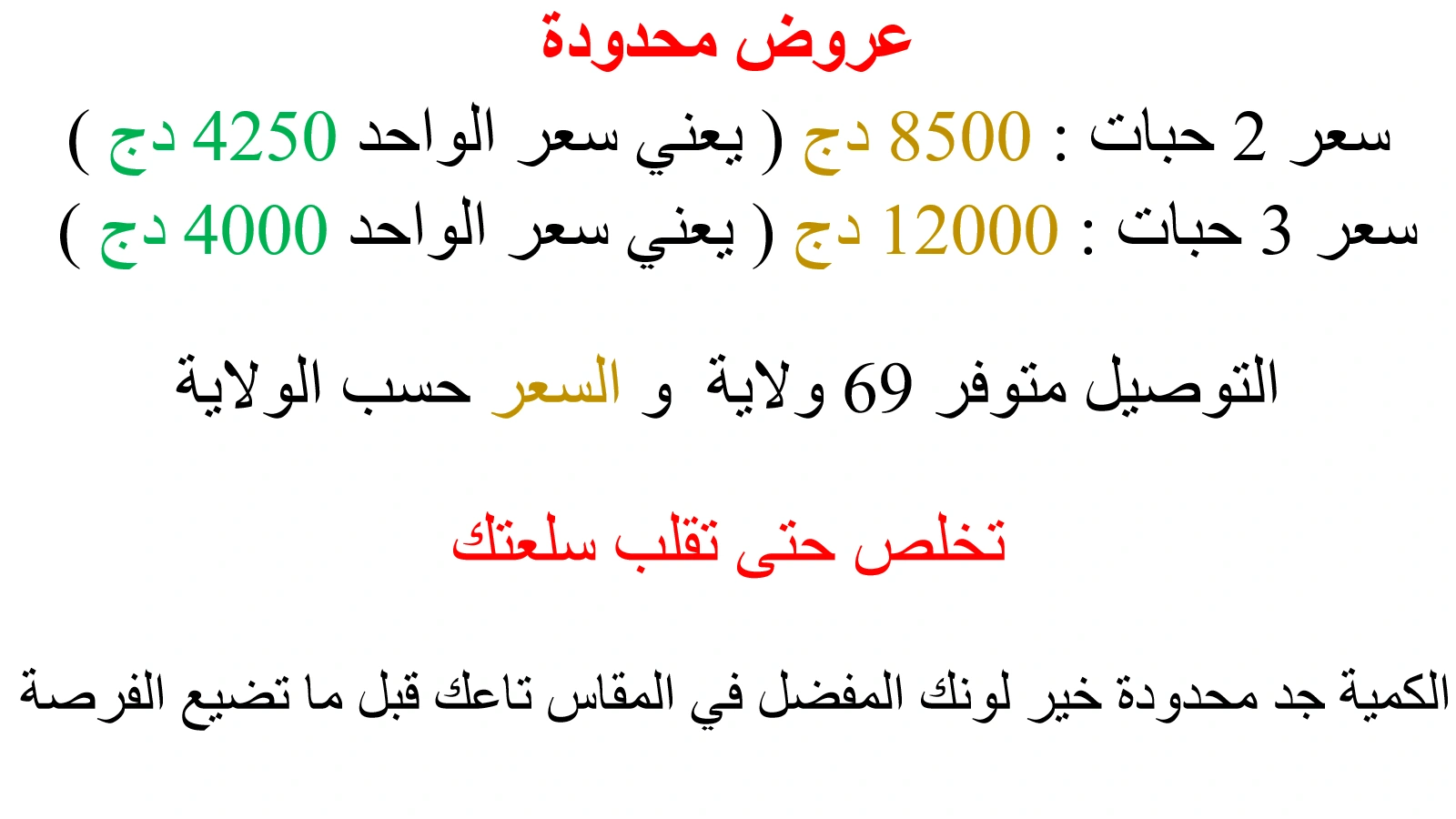 | سعر التوصيل | إختر 🌎 الولاية د.ج |