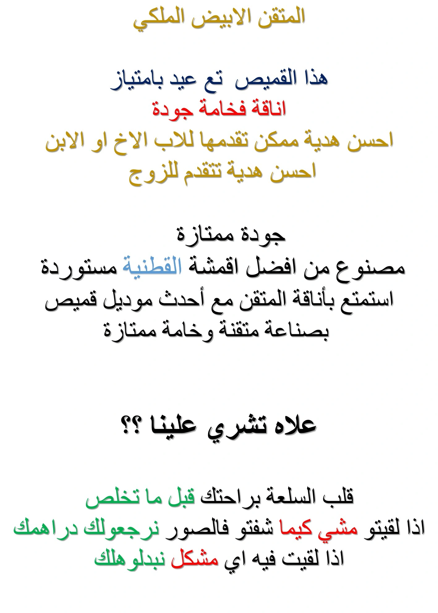 | قميص المتقن الابيض الملكي | 1 د.ج |